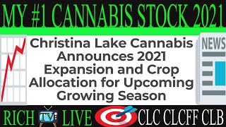 My #1 Cannabis Stock of 2021 My #1 Cannabis Stock of 2021 – RICH TV LIVE – January 23, 2021 – Christina Lake Cannabis Corp. (the “Company” or “CLC” or “Christina Lake Cannabis”) (CSE:CLC) (FRANKFURT: CLB) is pleased to announce that its executive management and its team of Master Growers have agreed upon a provisional…